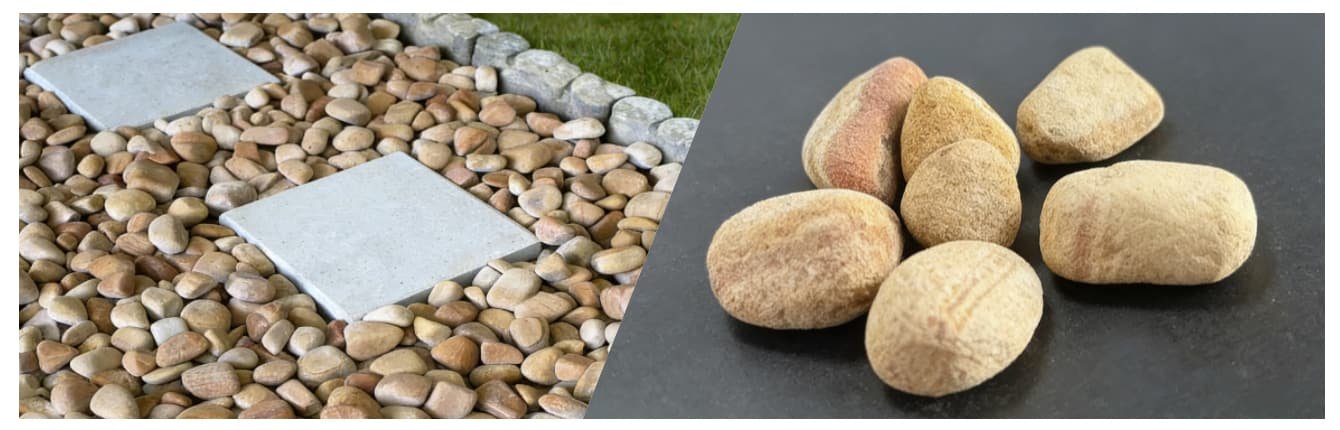 These stone pebbles are used in paths, patios, rock gardens, in water features and